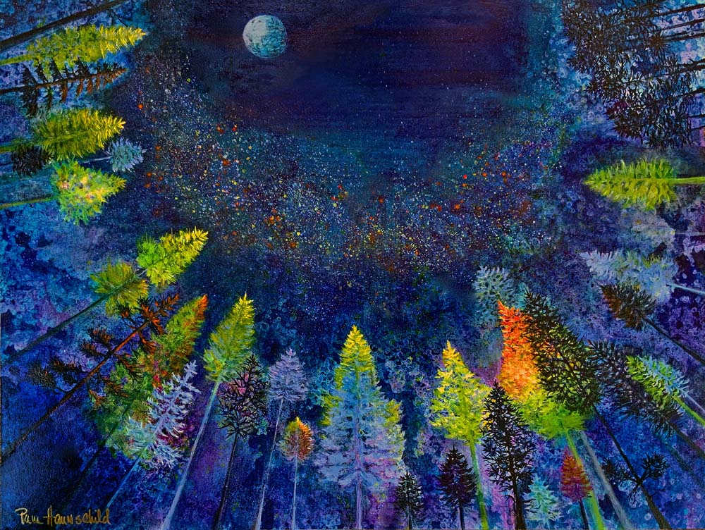 I am a painter of nature. I don’t copy what I see. Instead, I attempt to get to the essence of why we find being outside in nature soothing to our souls. My artistic inspiration comes from living on a wooded high-elevation property in Oregon, as well as from having held several National Park Artist-in-Residence positions. I work with water media. My work is colorful, highly textured, and semi-abstract, though the natural forms can still be identified.